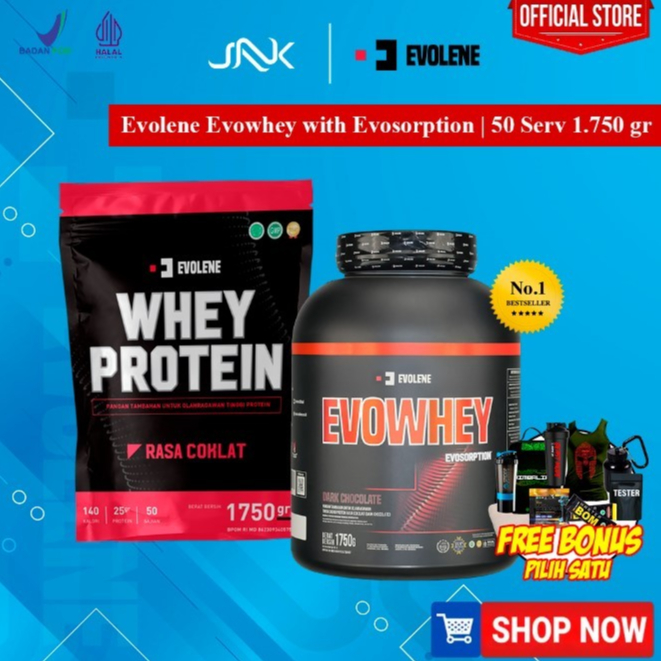Evolene Evowhey with Evosorption 1750gr 50 Serv | Susu Whey Penyerapan Tinggi Protein Cutting Diet