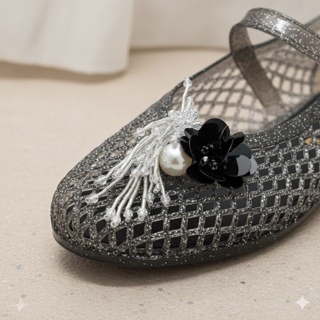 Porto Zoey - Flatshoes Jelly Lentur Model Jaring Sepatu with Snapbling pantai jaring-jaring anti air sepatu kekinian