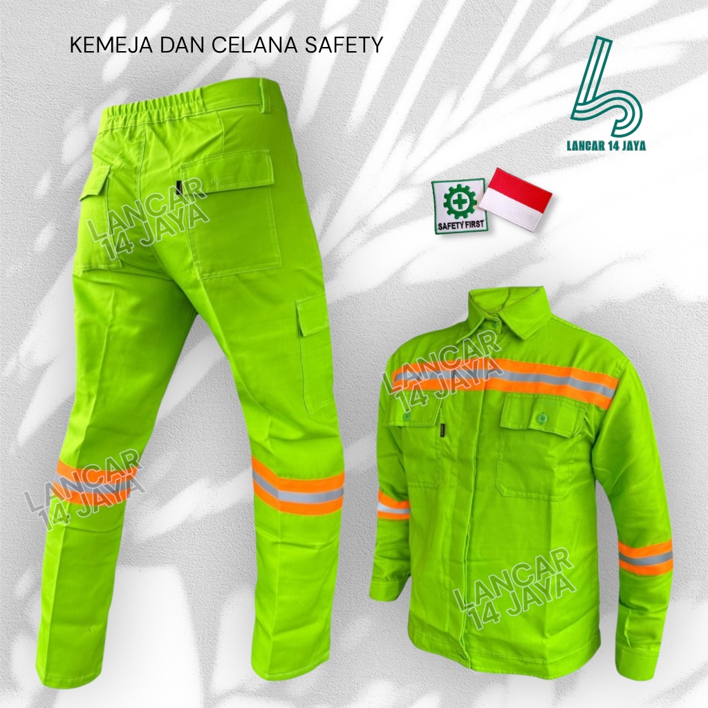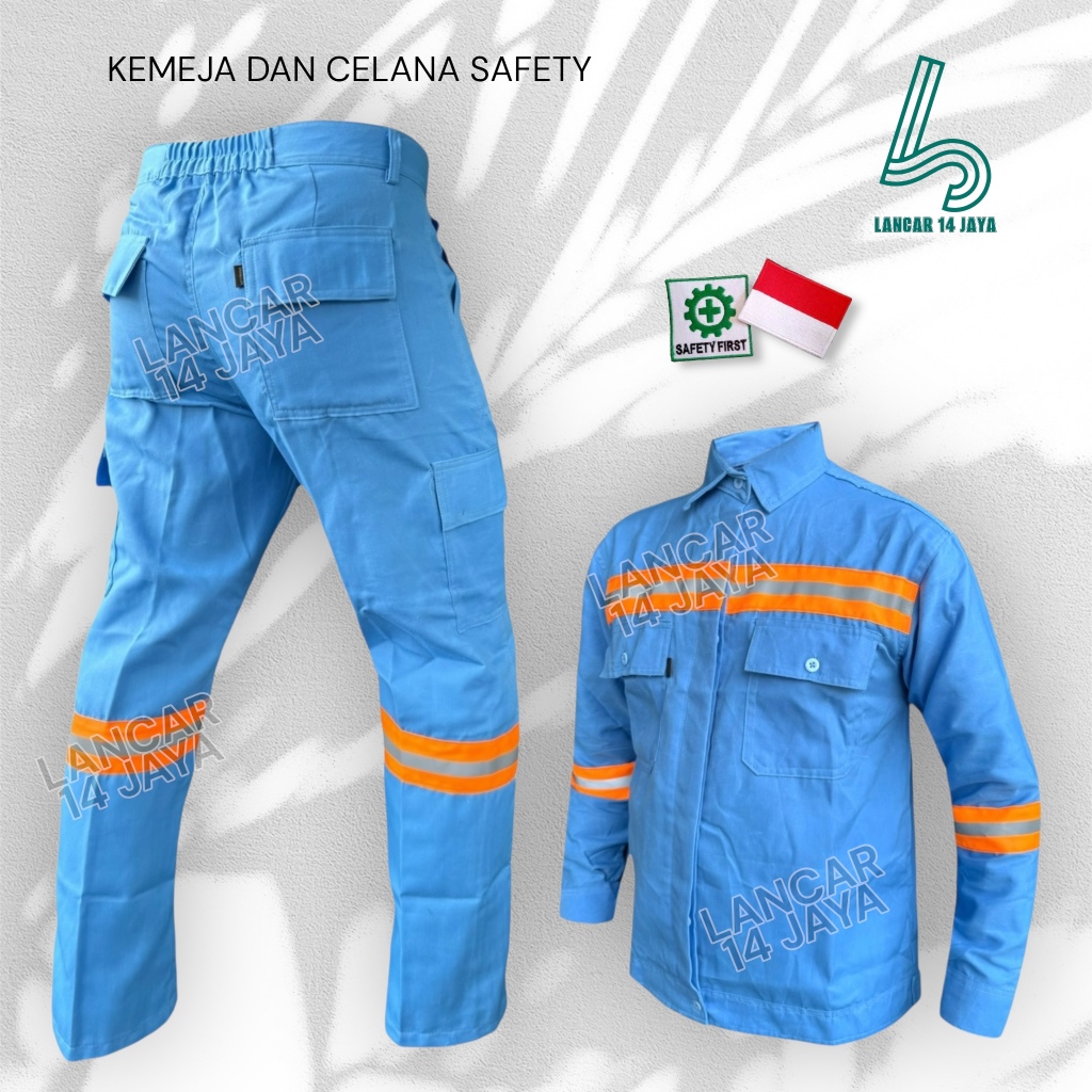 Wearpack Safety Setelan Baju Kemeja Kerja Lapangan Werpak List Oren Baru