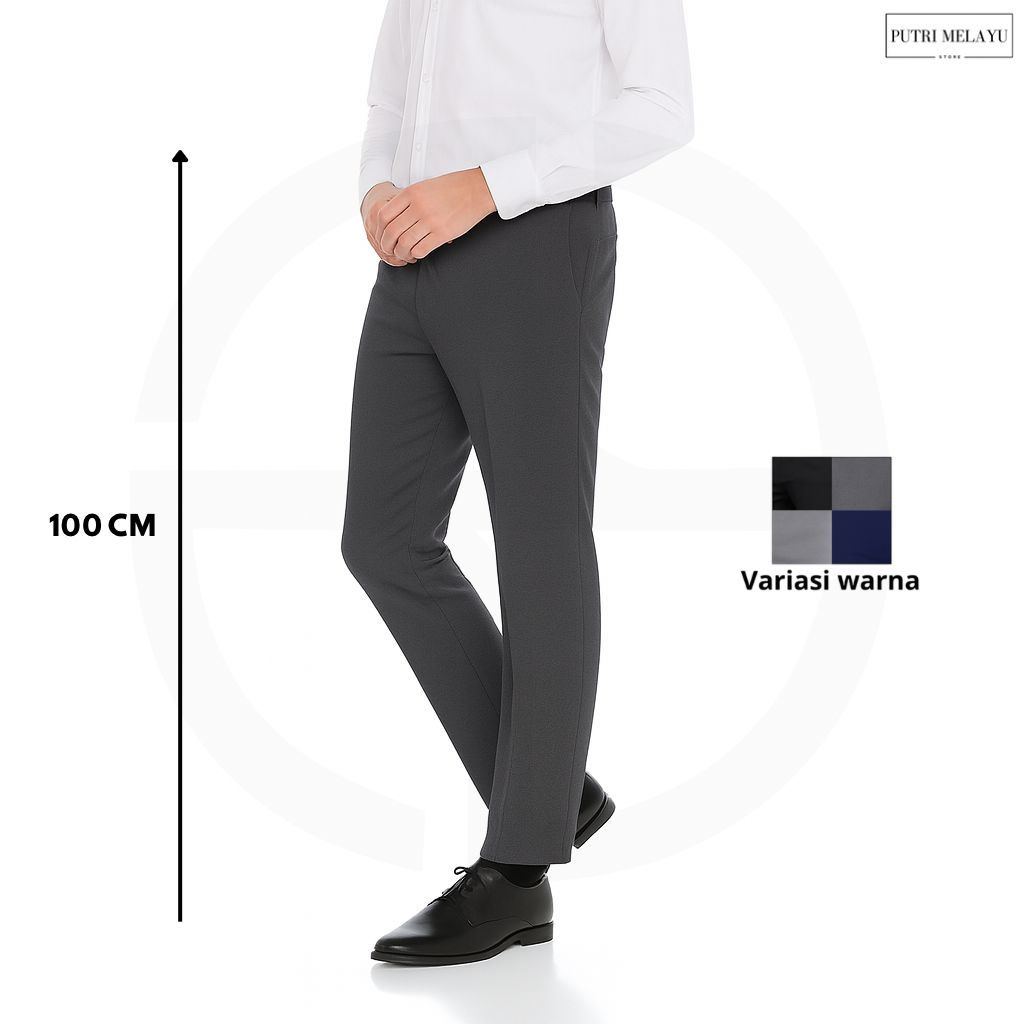 CELANA BAHAN | KERJA | FORMAL | KANTOR | PANJANG | HITAM | DASAR PRIA SLIMFIT 2