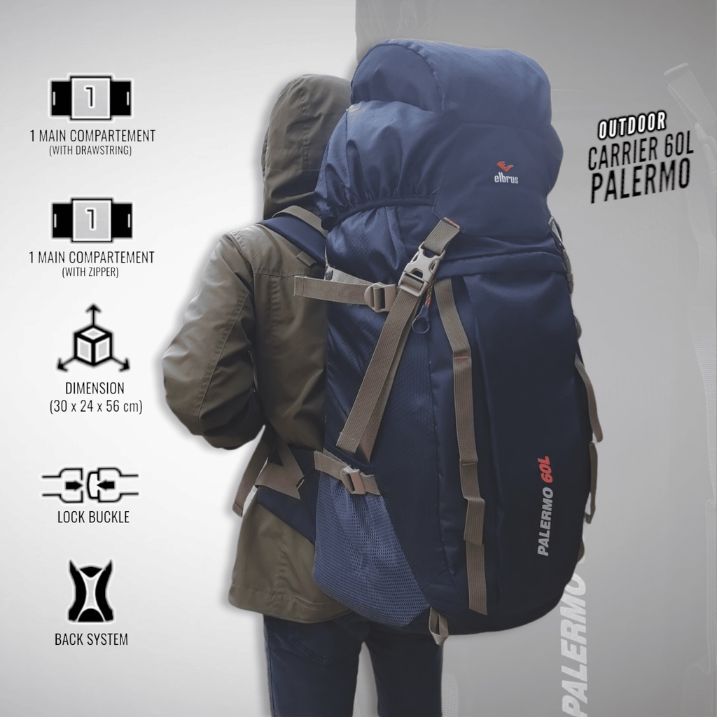 Tas Ransel Gunung Camping Outdoor Backpack 60 Liter Tas Keril Elbrus Palermo