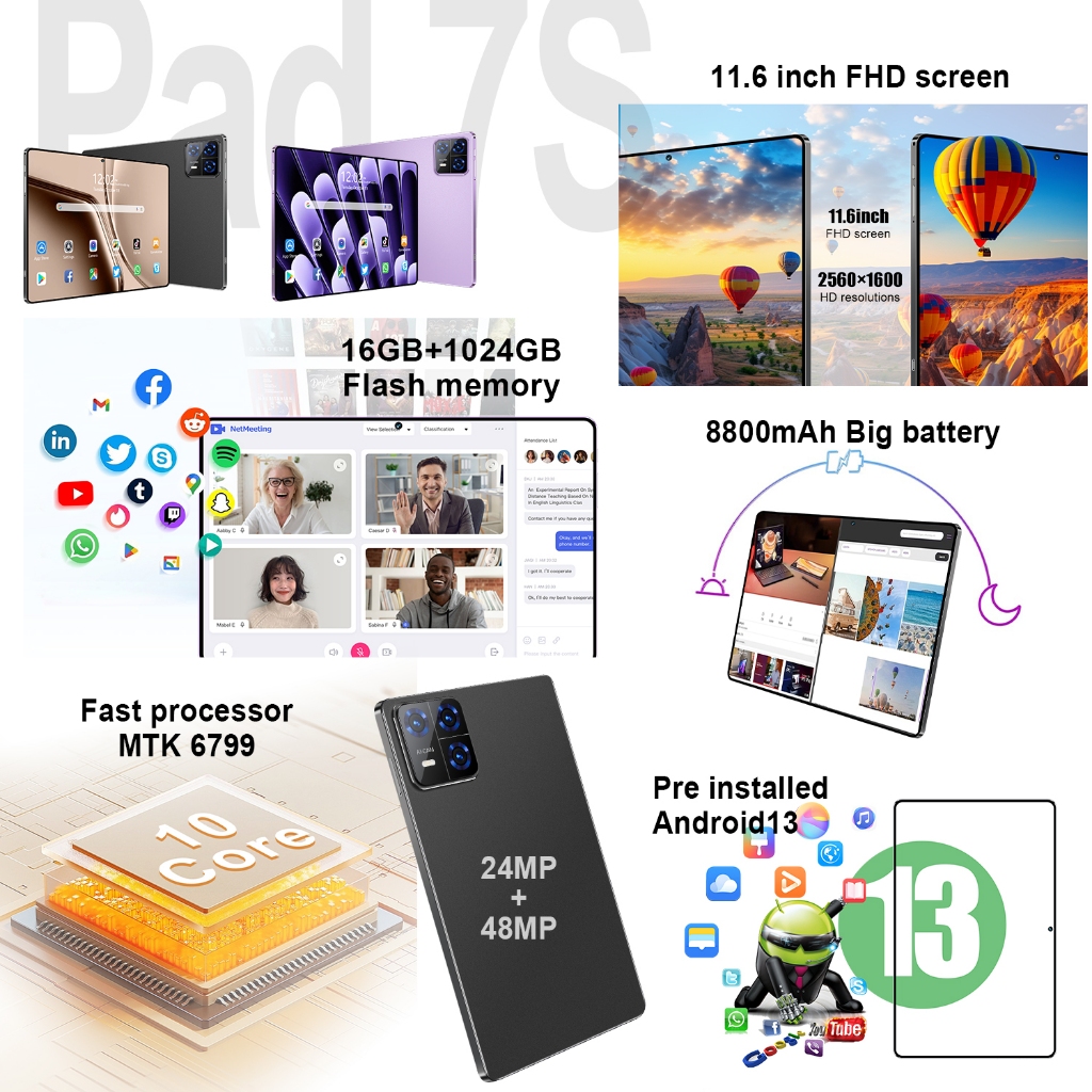 SIRKELS Tablet Pad7S | 16GB/1024GB | 11.6''IPS Screen | Tablet Android 13 | 5G Dual SIM Wifi | 8800mAh kapasitas besar