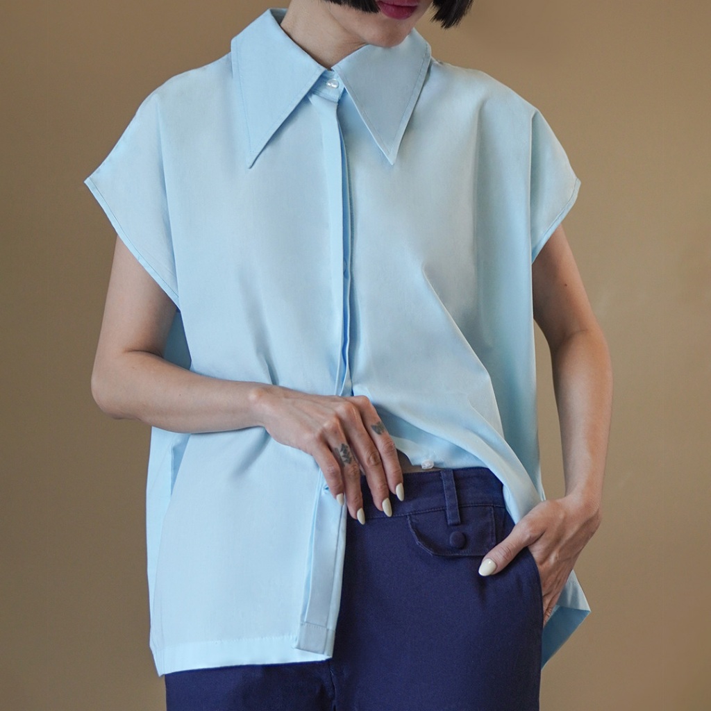 SAVIO Cortez Kathleen Blouse Wanita Oversized Kotak Kecil Modern Big Collar