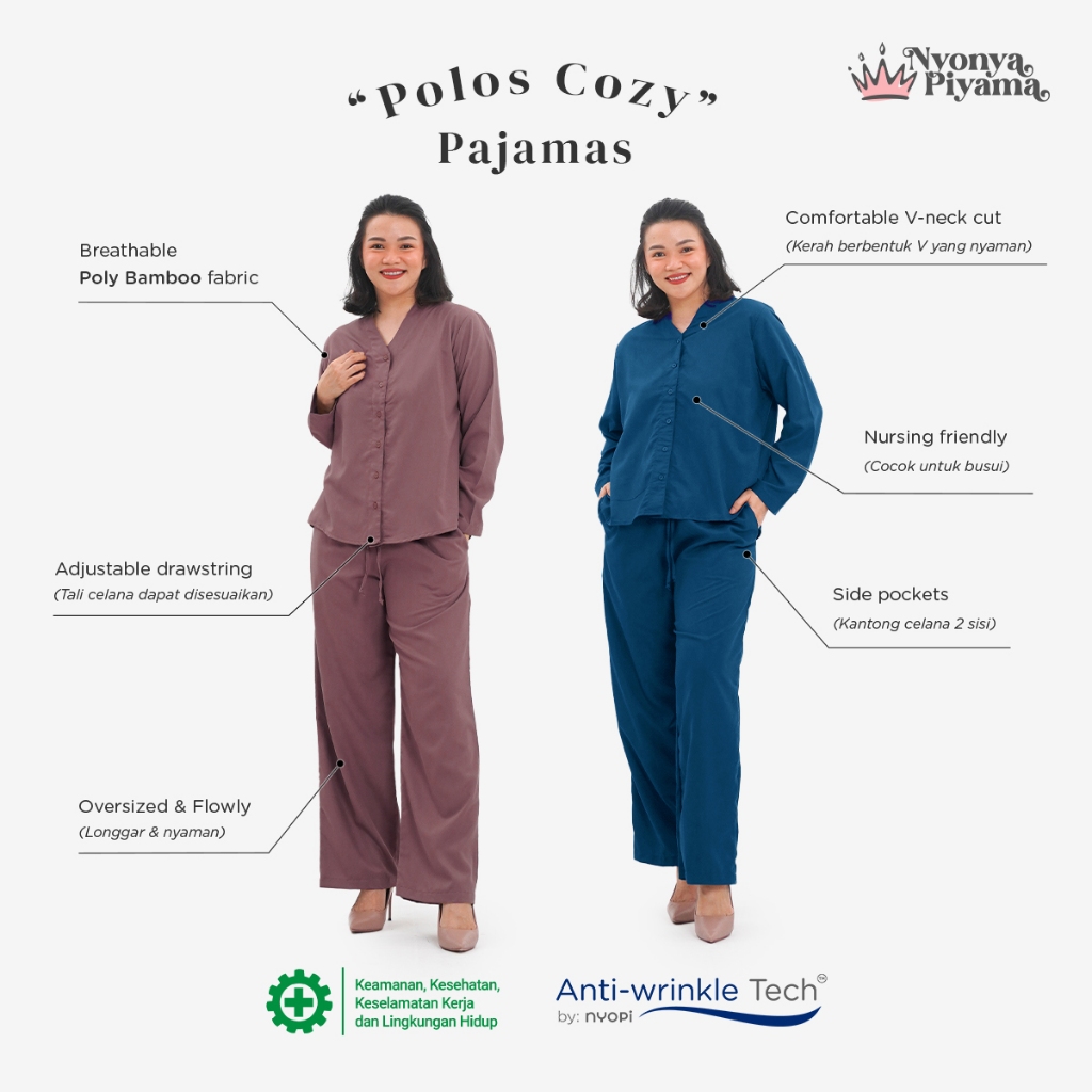 [BEST SELLER] Nyonya Piyama Poly Bamboo Oversized Cozy Set Lengan Panjang Polos