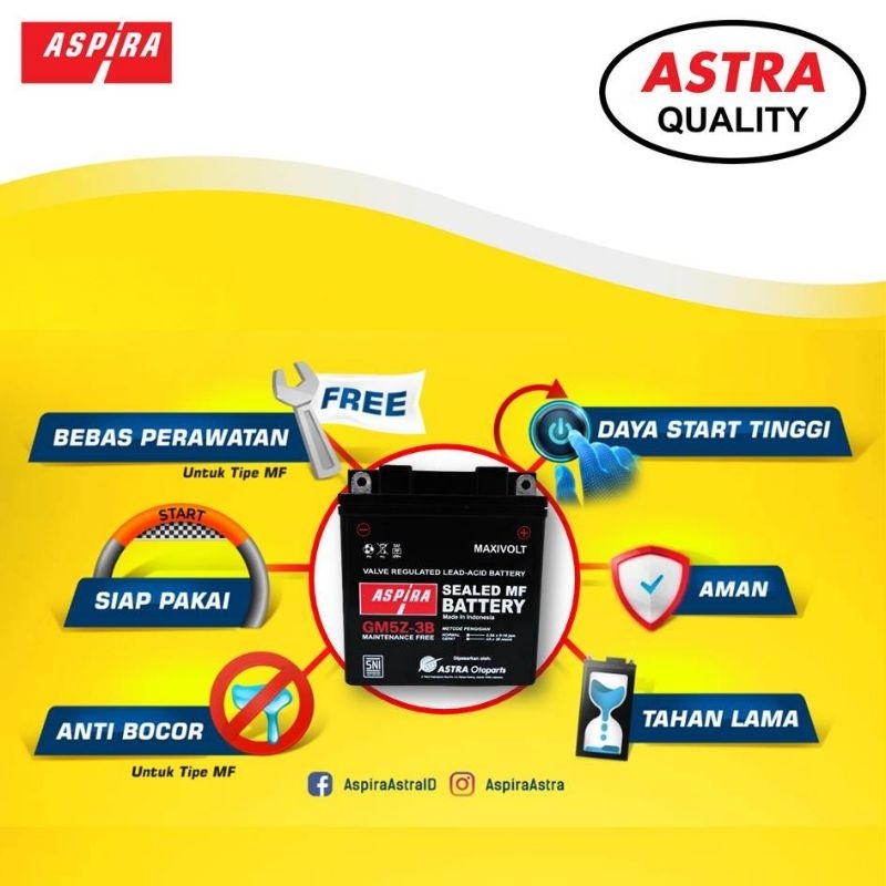 [Garansi Resmi] [Aspira Aki] Aki Motor Bergaransi Yamaha Mio M3 S J Soul Fino Xride Xeon Jupiter Mx 135 Byson Mx King Gtz5s Mf Kit