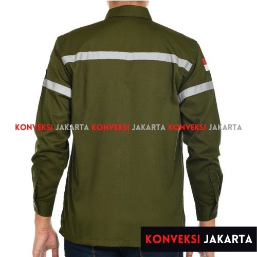 Baju Wearpack Kemeja Safety K3 Proyek Tambang Lengan Panjang - Pakaian Seragam Werpak Kerja Atasan Scotlite Lapangan Warna Hijau Army Pria Wanita