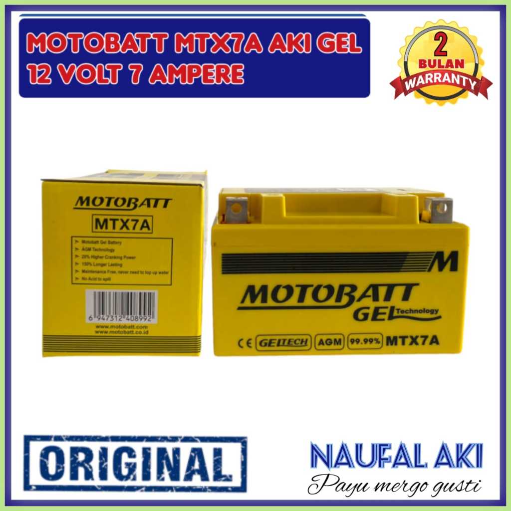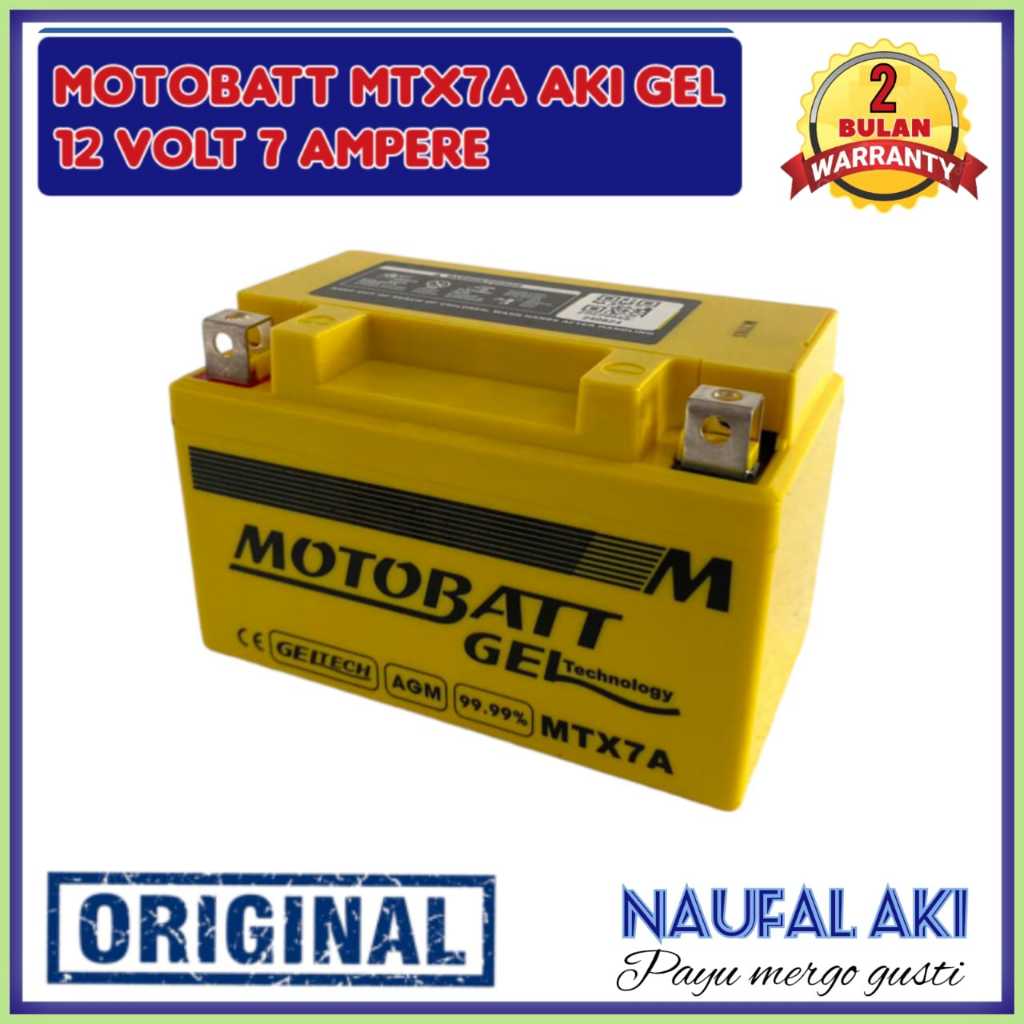 Aki Motor Ninja 250 FI/Karbu/PULSAR/PIAGIO/KYMCO Motobatt MTX7A Aki GEL