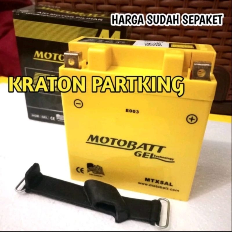 Aki Motobatt Jupiter Fizr Vega Original Sepaket Karet Tingal Pasang