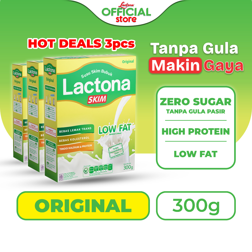 PAKET LACTONA SKIM Low Fat Susu Nutrisi dan Diet 300 Gr X 3 Box