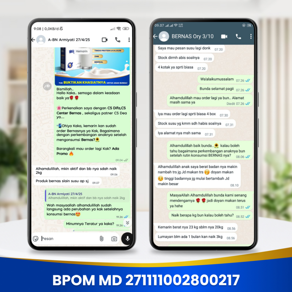BERNAS - Susu Bubuk dengan Whey Protein & Serat Pangan - Tinggi Protein Kalsium & Rendah Gula