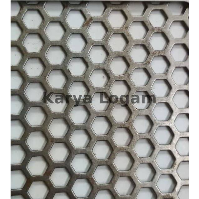 Plat Lubang Hexagonal Segi Enam 1 mm x 1.2 M x 2.4 M x dia. lubang 6mm - Ram Grill Speaker / Perforated Hexagonal