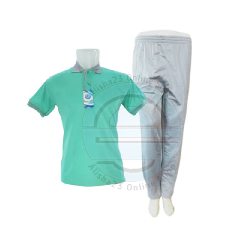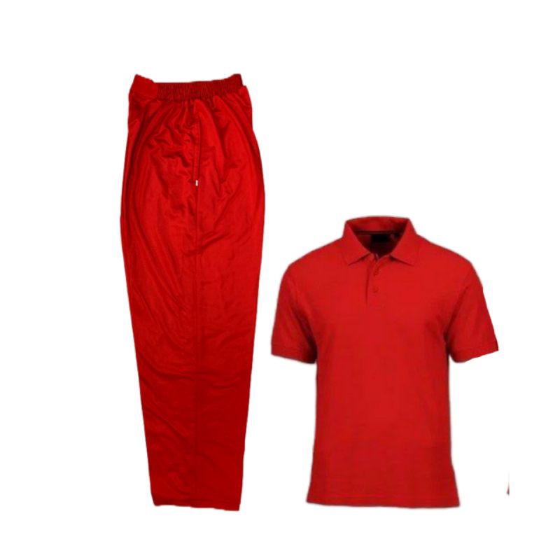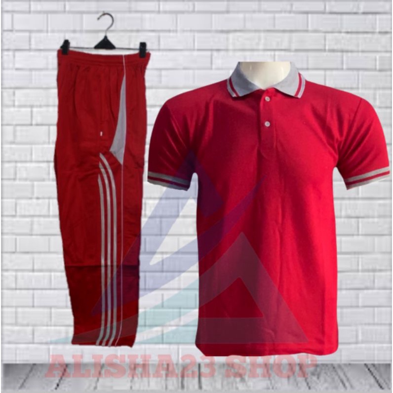 Setelan Baju Berkerah Lengan Pendek Hitam abu/Stelan Training Olahraga Pria Merah Abu/ Setelan Kaos Kerah Tangan Pendek Celana Training olahraga wanita Termurah Benhur abu