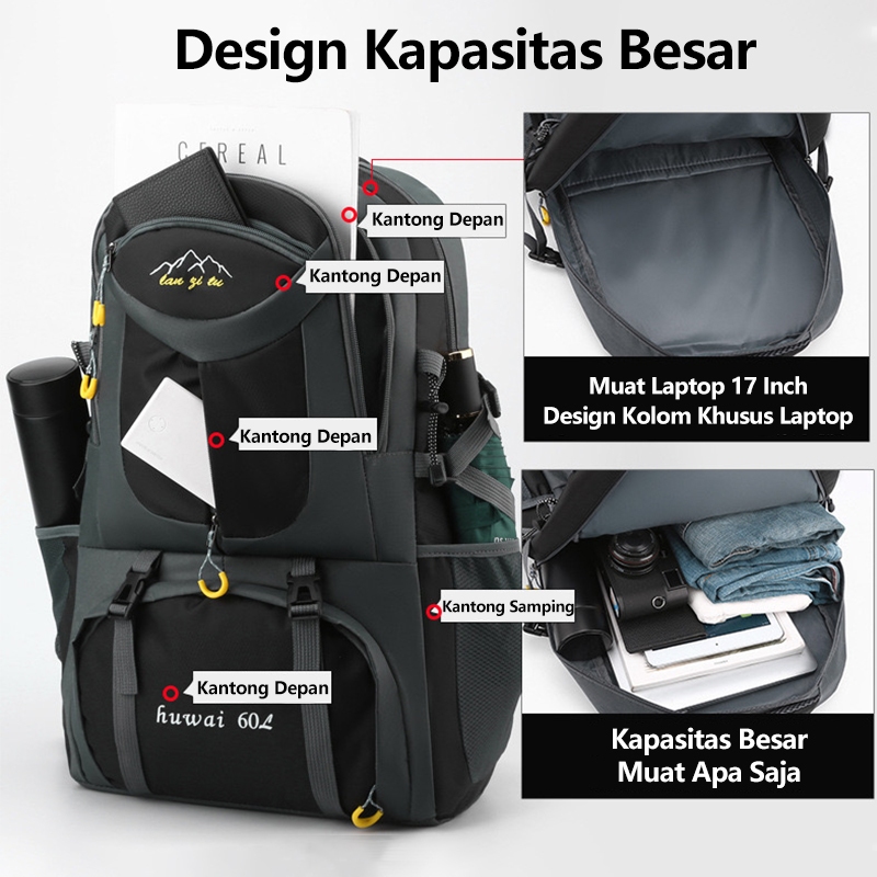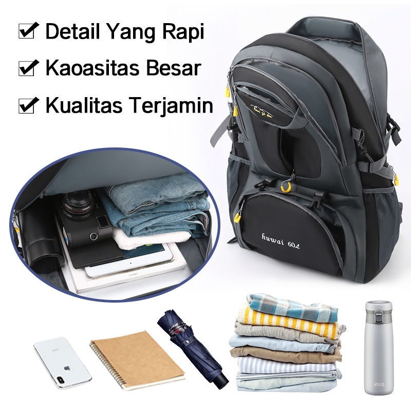 Highland Tas Ransel Pria Besar Gunung Tas Backpack Jumbo Anti Air Casual Tas Punggung 60L Outdoor TR120