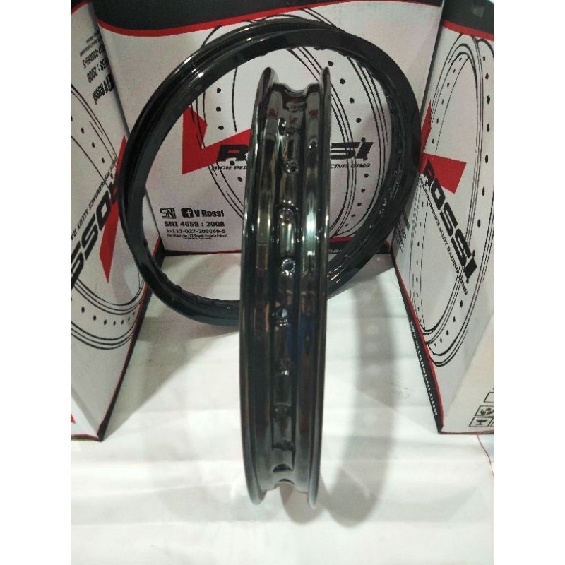 VELG ROSSI JARI JARI RING 17 HITAM GLOSSY HOLE 36 TERSEDIA UKURAN 140-160-185-215 UNTUK SEMUA MOTOR MIO BEAT VARIO RX