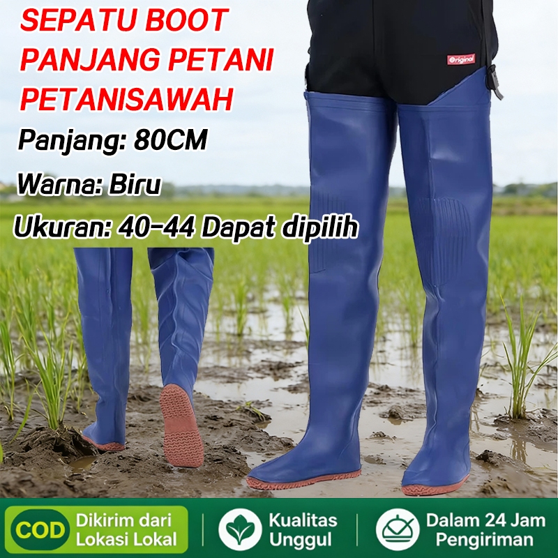 Sepatu Boots Pria Anti Air / Sepatu Boot Panjang untuk Sawah / Ladang / Empang / Panjang Sampai Paha 80cm / Boot Karet Elastis Di Atas Lutut