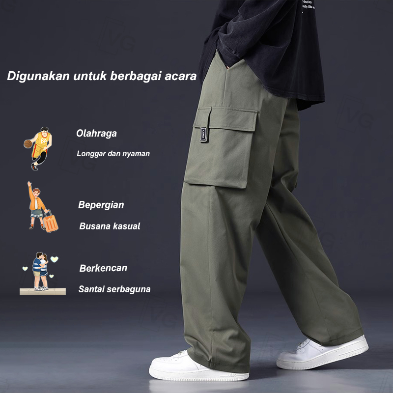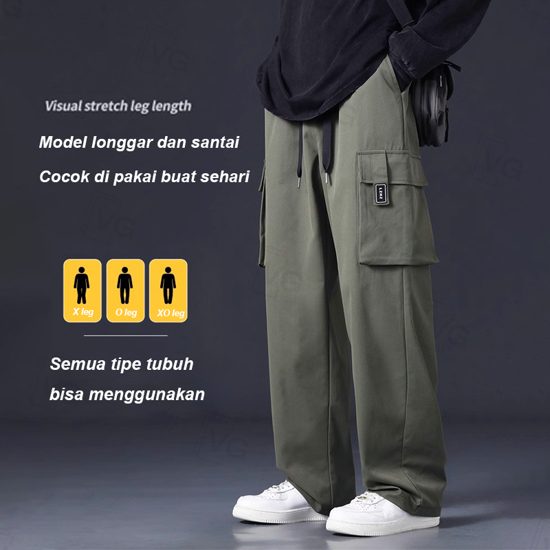 Celana cargo panjang pria original korean loose pants karet gombrang celana panjang Cargo Pants Pria