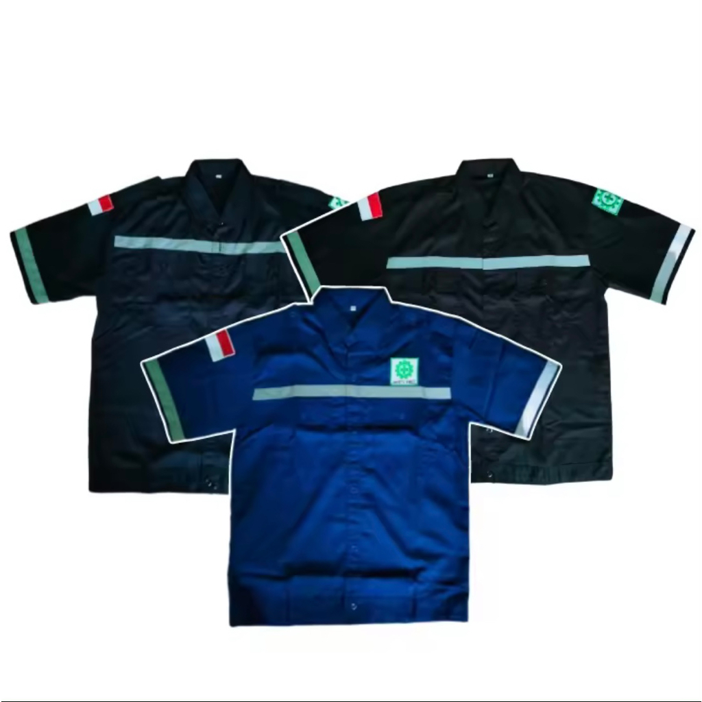 Baju Safety lengan pendek wearpack safety free logo k3 dan bendera