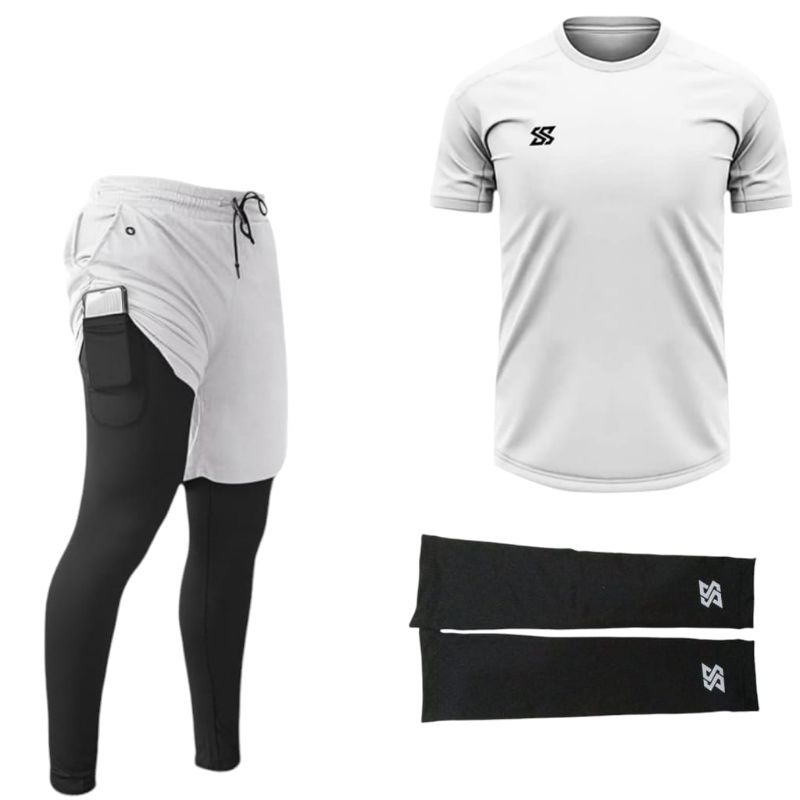 Stelan Jersey Baju Dan Celana 2in1 Panjang Olahraga Voli Lari Running Futsal Joging Fitnes Gym Pria Wanita