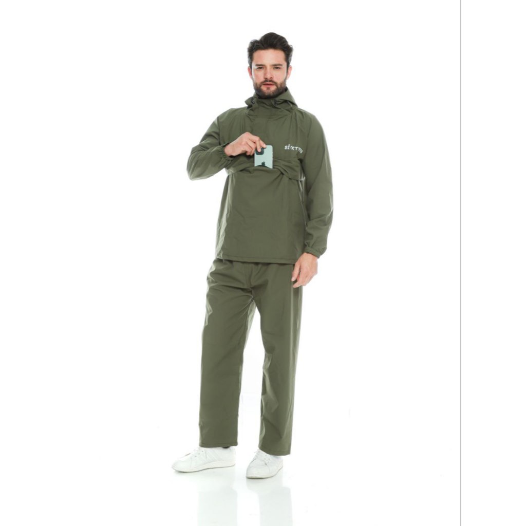 Jas Hujan SIXTEN Jas Hujan Pria Wanita Dewasa Bahan Taslan Saku Kangguru