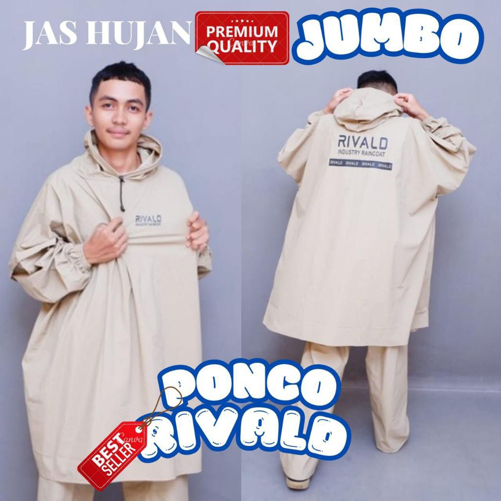 JAS HUJAN SETELAN PONCO + CELANA JUMBO PRIA WANITA PVC 0,25 CREAM TERBAIK BY RIVALD
