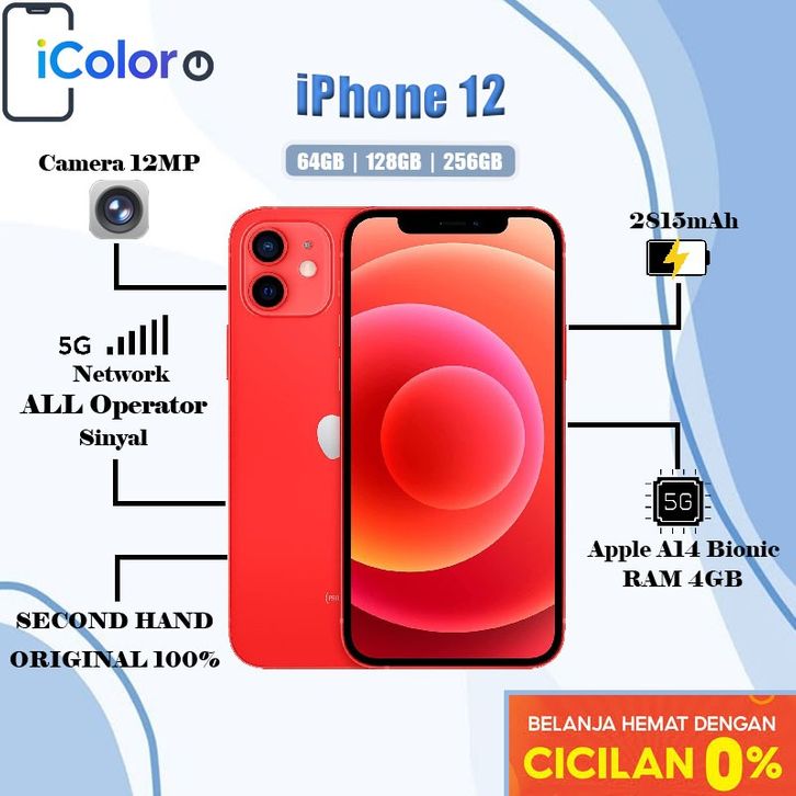 iPhone 12 64GB 128GB 256GB Secondhand Normal Full set Original 100% ex internasional Apple