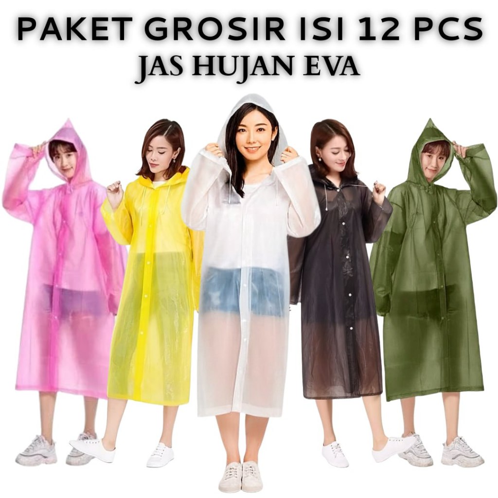 ISI 12 PCS (1 LUSIN) Jas Hujan EVA Tebal Dewasa Jas Hujan Dewasa Poncho Mantel Hujan Lengan Karet