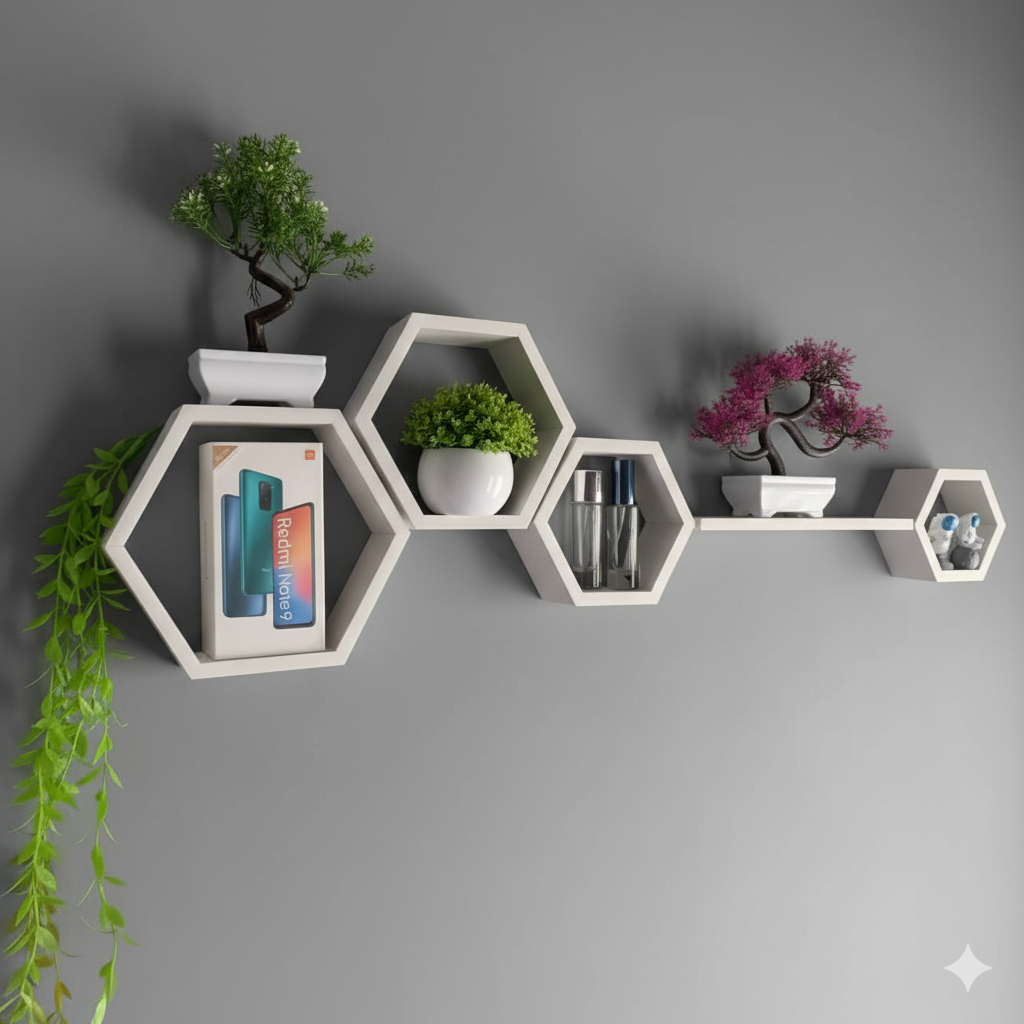 hiasan dinding kamar esthetic rak hexagonal 1 set ambalan ruangan tamu hexsagonal tanpa bor