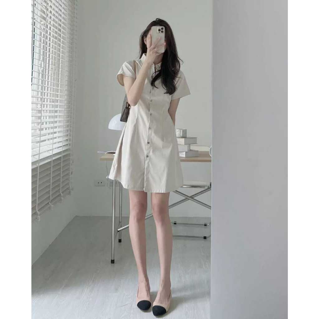 Clothesup Dress Kancing Depan Korean Style | Baju Tunik Wanita Lengan Pendek