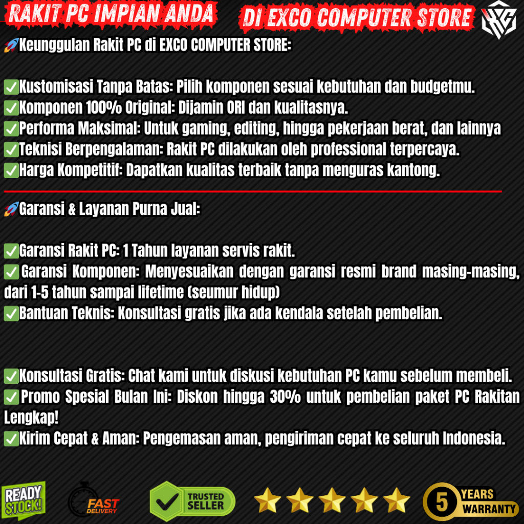 PC Rakitan ECS Budget - PC Lengkap Siap Pakai Ram 16GB Gaming Desain Editing Dll