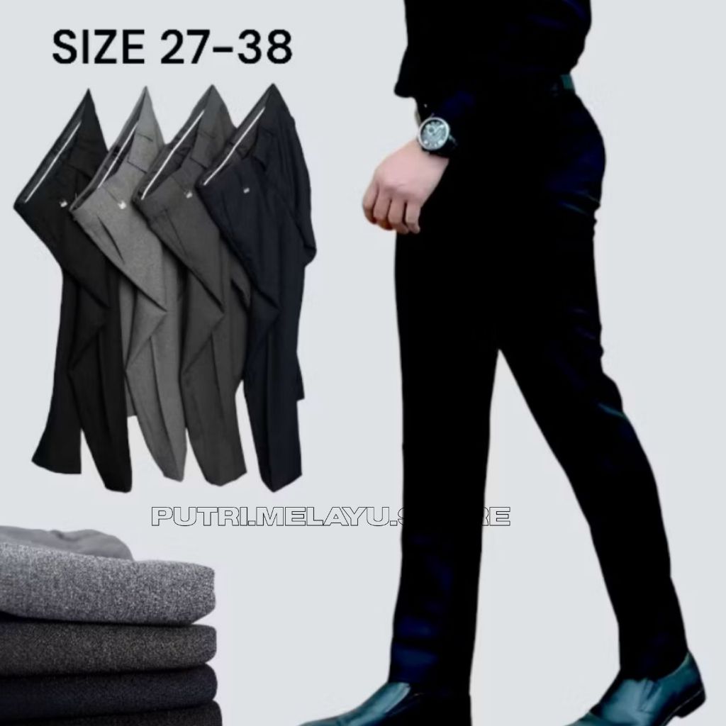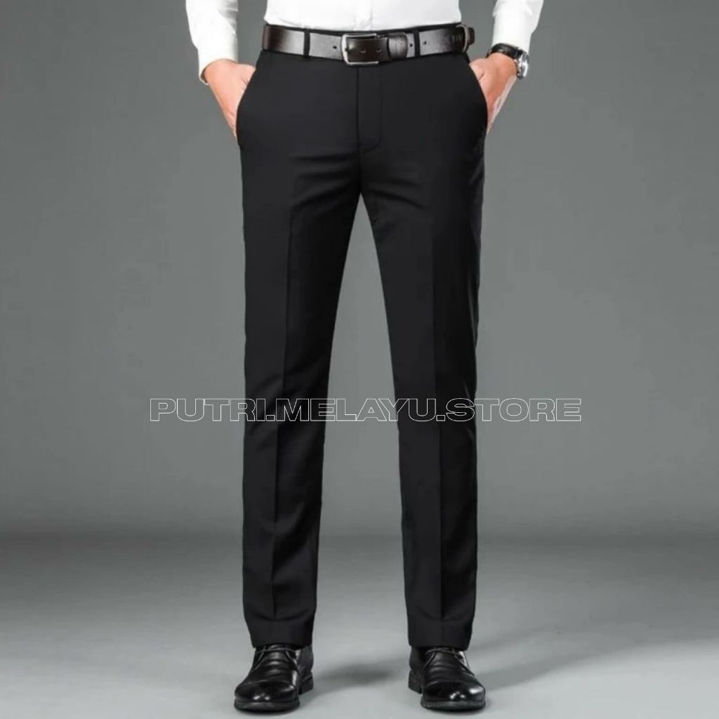 CELANA BAHAN | KERJA | FORMAL | KANTOR | PANJANG | HITAM | DASAR PRIA SLIMFIT 1