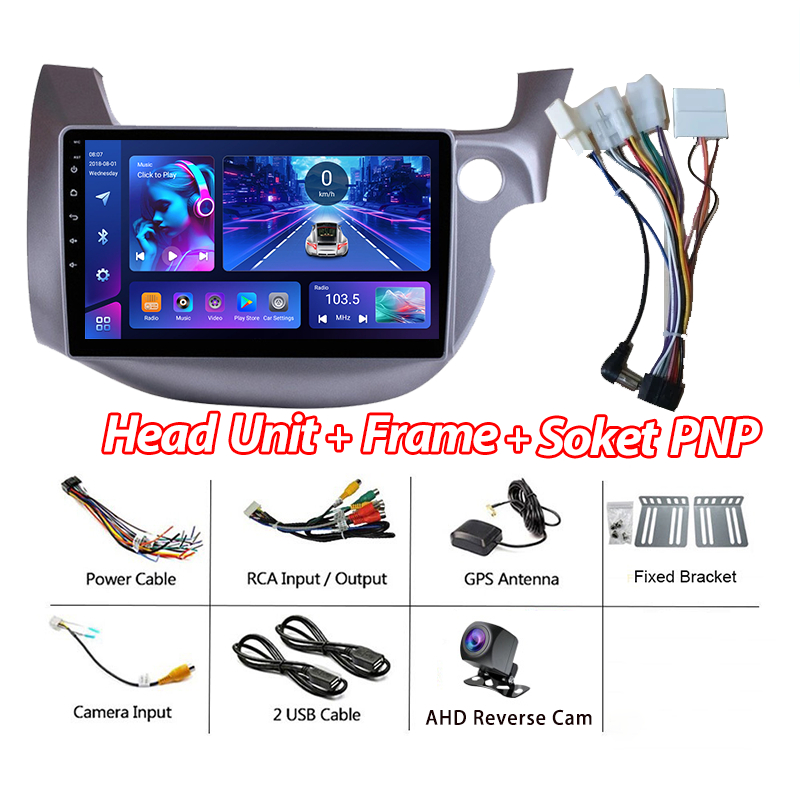 HONDA Head Unit 8+128GB Untuk Jazz/Brio/BRV/HRV/CRV/Mobilio/Freed Android 14 Mobil IPS Screen Termasuk Frame / Soket PNP / AHD Kamera mundur / Kipas Support Carplay/WIFI/GPS/Mirrorlink