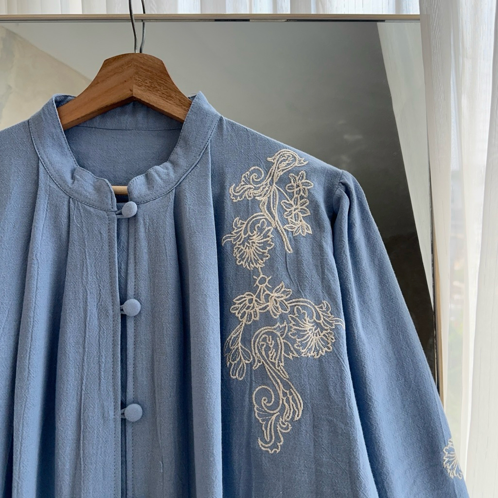 Linen Blouse | MYSHIRT - Blouse Linen Bordir Kerah Shanghai | Atasan Linen