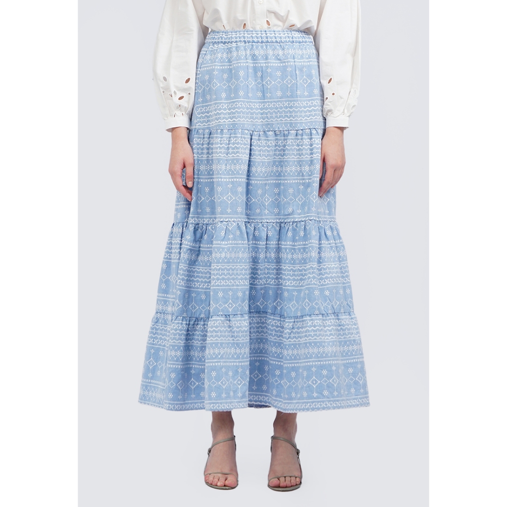Et Cetera Printed Tier Maxi Skirt LT. BLUE