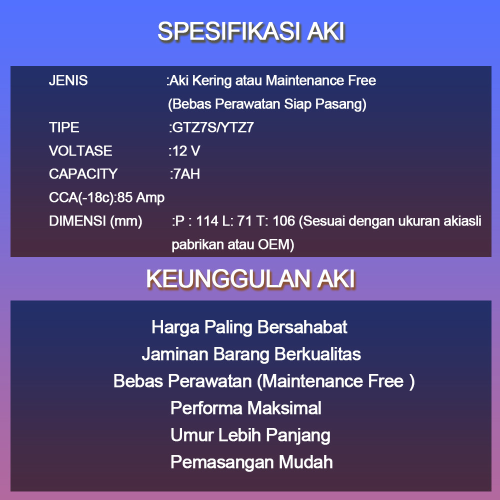 Aki Motor Suzuki GSX R 150 Aki Kering Accu Kering MF GTZ7S