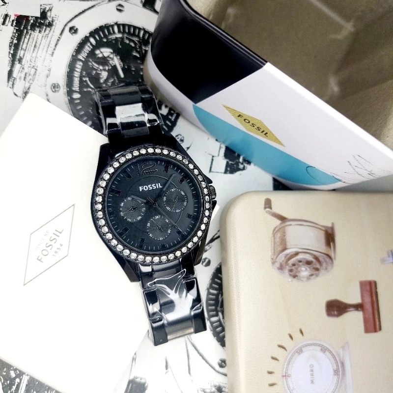JAM TANGAN WANITA FOSSIL ES4519 / ES 4519 BLACK STAINLESS STEEL FREE ONGKIR - FREE BOXJAM TANGAN WANITA FOSSIL ES4519 /