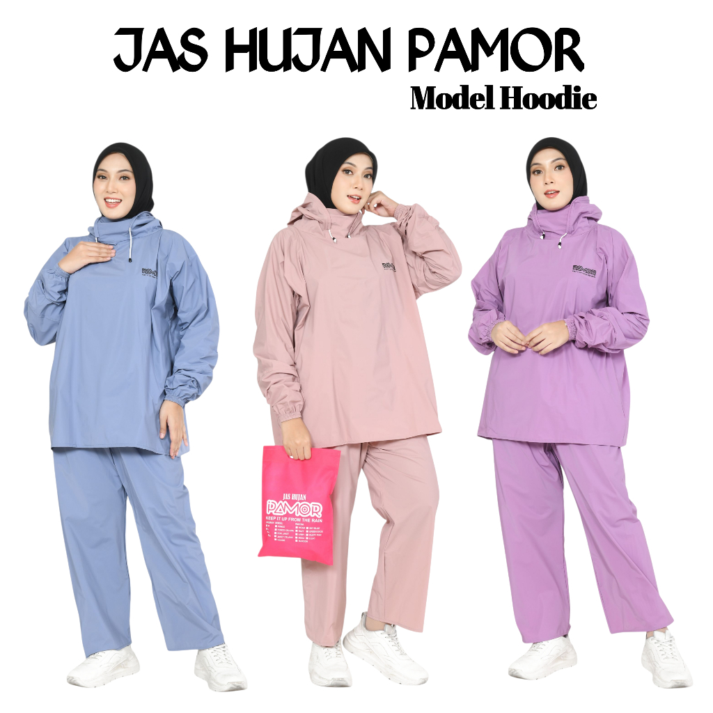 TERBARU JAS HUJAN PAMOR MODEL HOODIE PRIA WANITA DEWASA BAHAN TEBAL PVC 0,25 ANTI REMBES