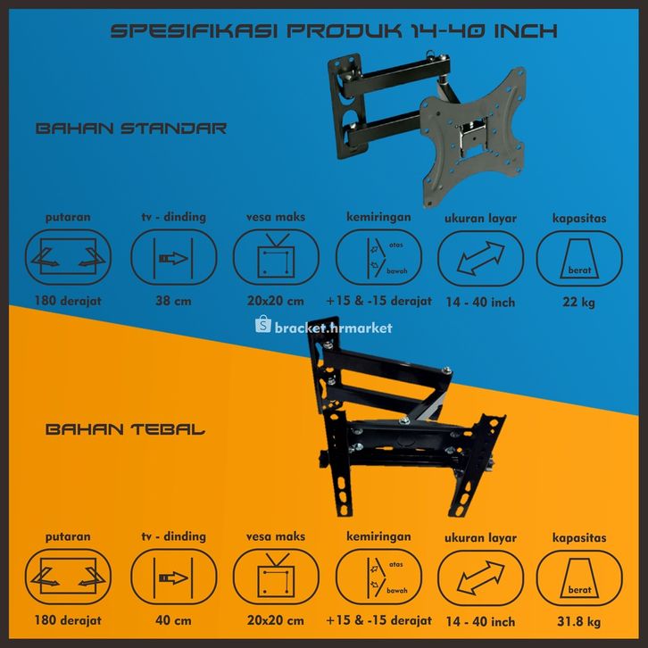 bracket tv led lcd 32 40 43 24 21 29 17 14 Inch dijamin cocok 14 - 40 In 6 arah universal breket tv briket tv braket tv