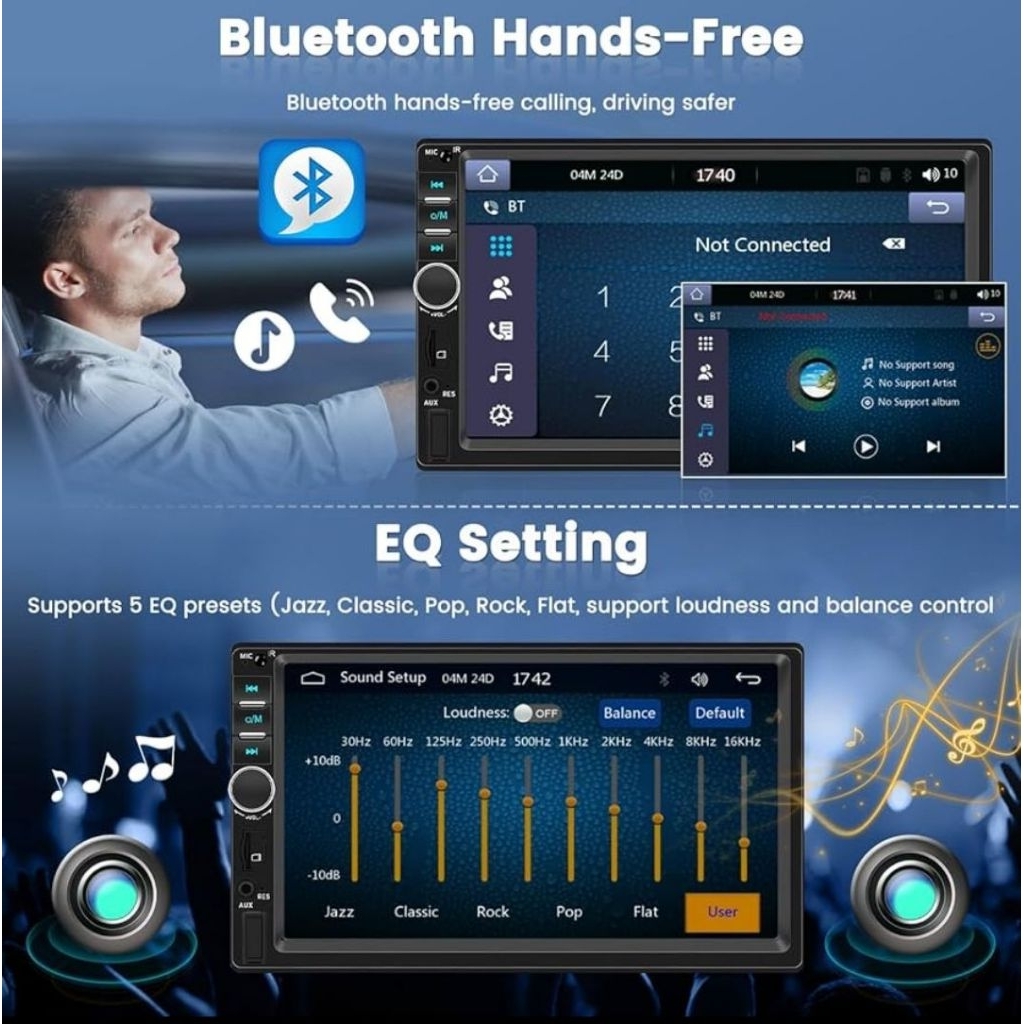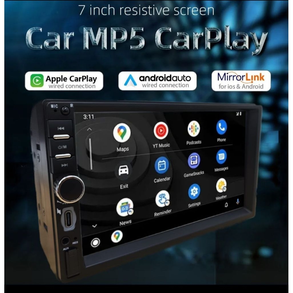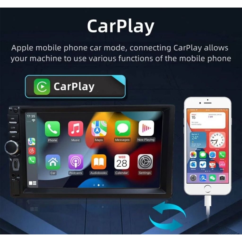 Car Bluetooth 5.1 Wireless MP5 CarPlay Android Auto Head Unit Mobil Double 2 DIN 7 Inch HD Touchscreen with Remote Multifungsi