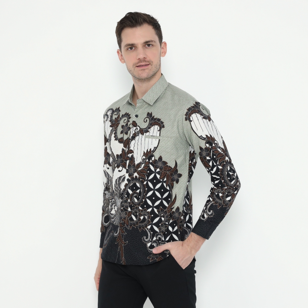 Batik Couple Atasan Batik Pria dan Wanita Abu OLR293