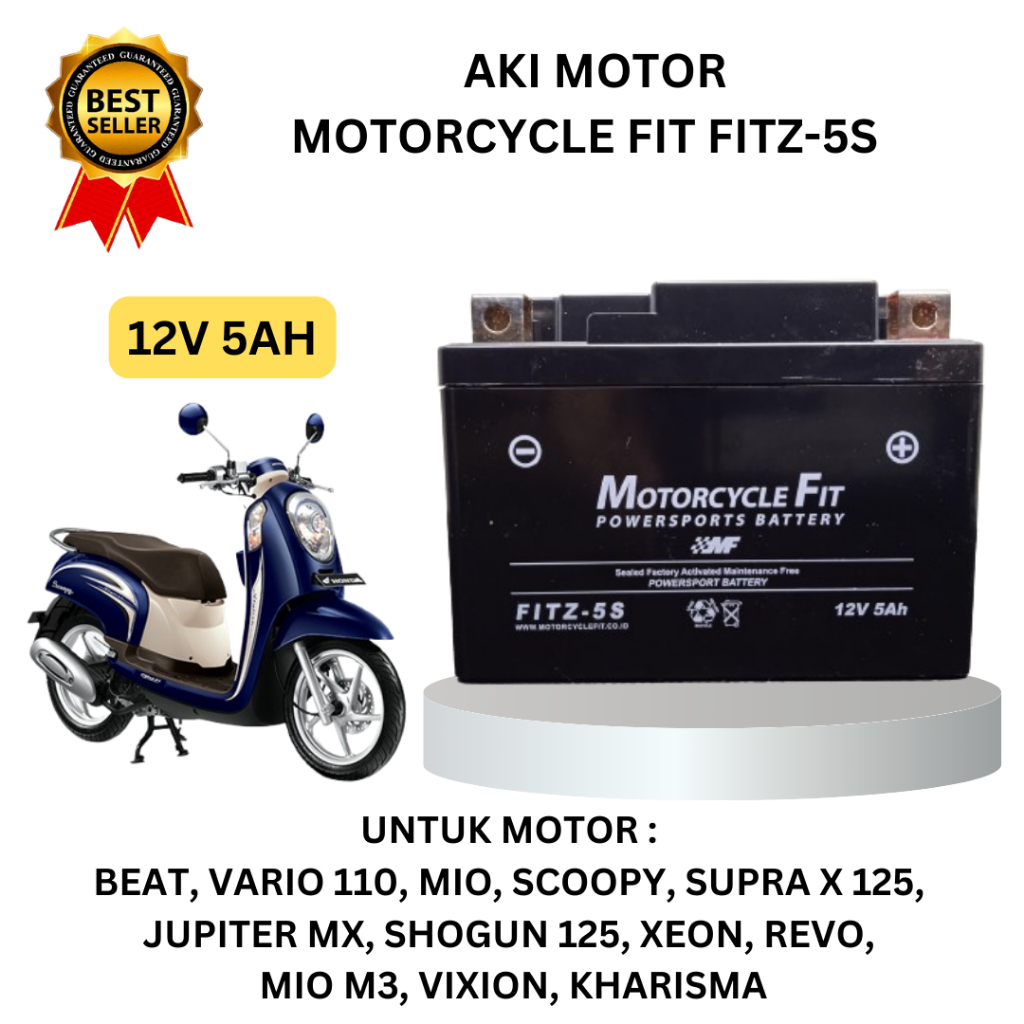 Aki Motor Beat,Mio,Vario,Scoopy, Jupiter MX ACCU Motorcycle Fit FITZ 5S