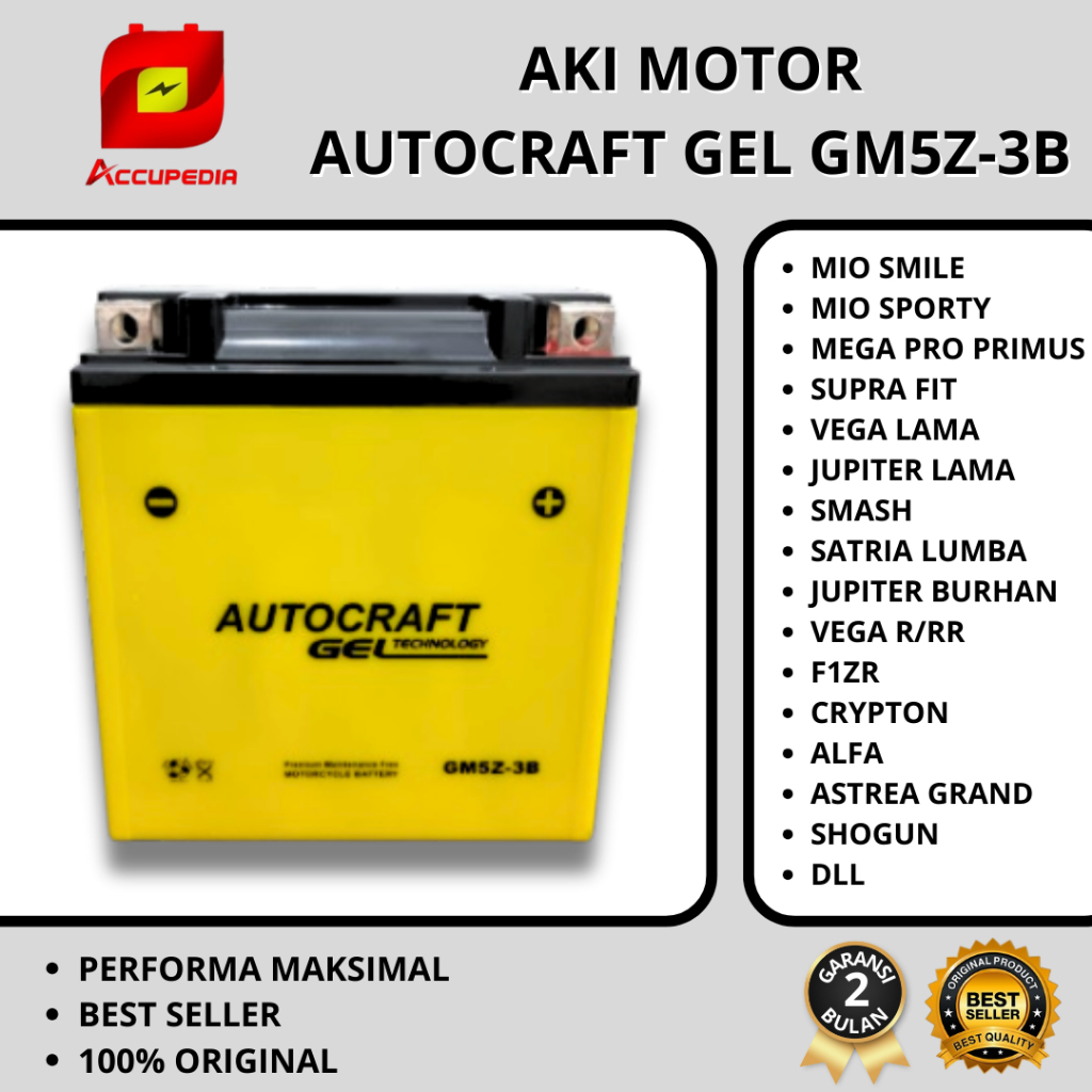 aki motor mio smile, mio sporty, supra fit, jupiter z, mega pro primus autocraft gel GM5Z-3B aki kering
