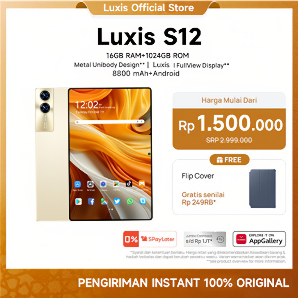 Luxis Tablet S12 (16GB+1024GB)11.6inch"lPS Screen Tablet Android 12 8800 mAh Dual Sim CardadvanTablet Murah100ribuan Anak Tablet android murah Luxis Oficial Store
