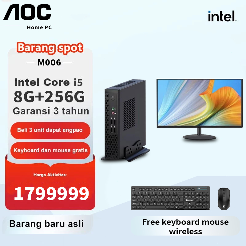 HUW Intel I3 I5 I7 PC Gaming Full Set Mini Komputer Desktop Cocok Untuk Kantor Bisnis Desain Grafis Keyboard Dan Mouse Gratis
