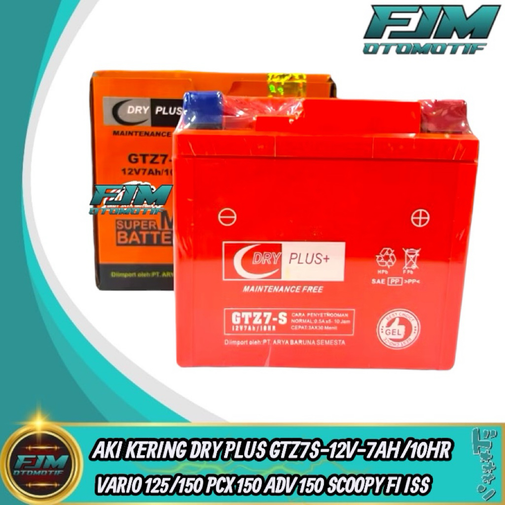 Aki Kering Motor Vario 125/150 CB 150R CBR 150R PCX ADV SATRIA FU GSX 150R GTZ7S-12Vol-7AH/10HR Original DRY+PLUS