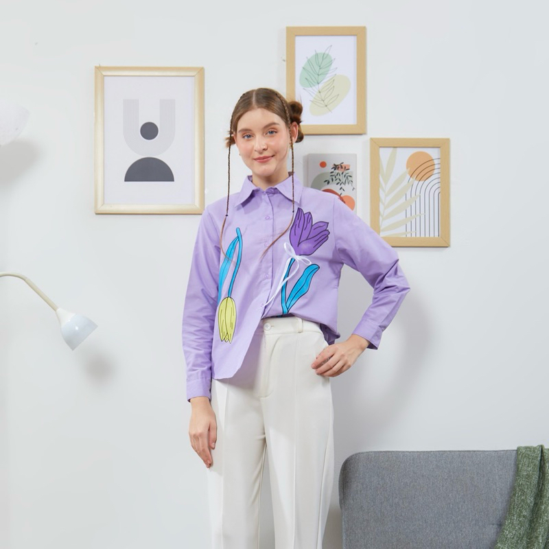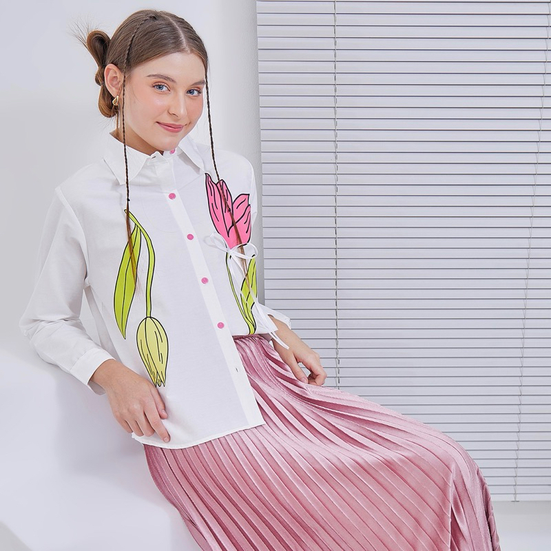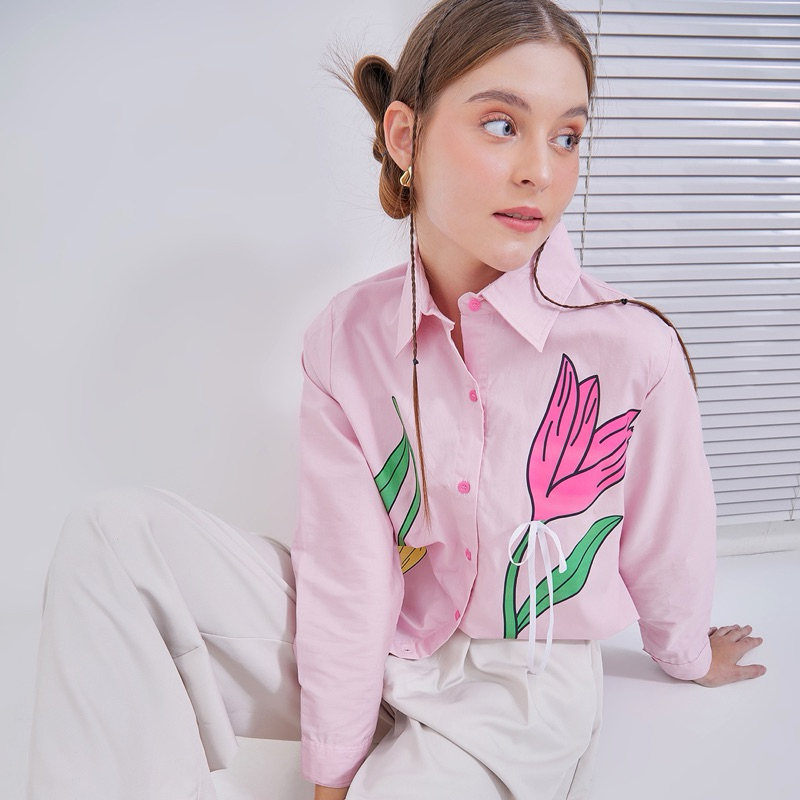 [ Senchi ] - Churippu Tulip Shirt / Atasan Kemeja Bunga Lucu / Kemeja Wanita Style Jepang & Korea / Kemeja Wanita Bunga Tulip / Flower Shirt