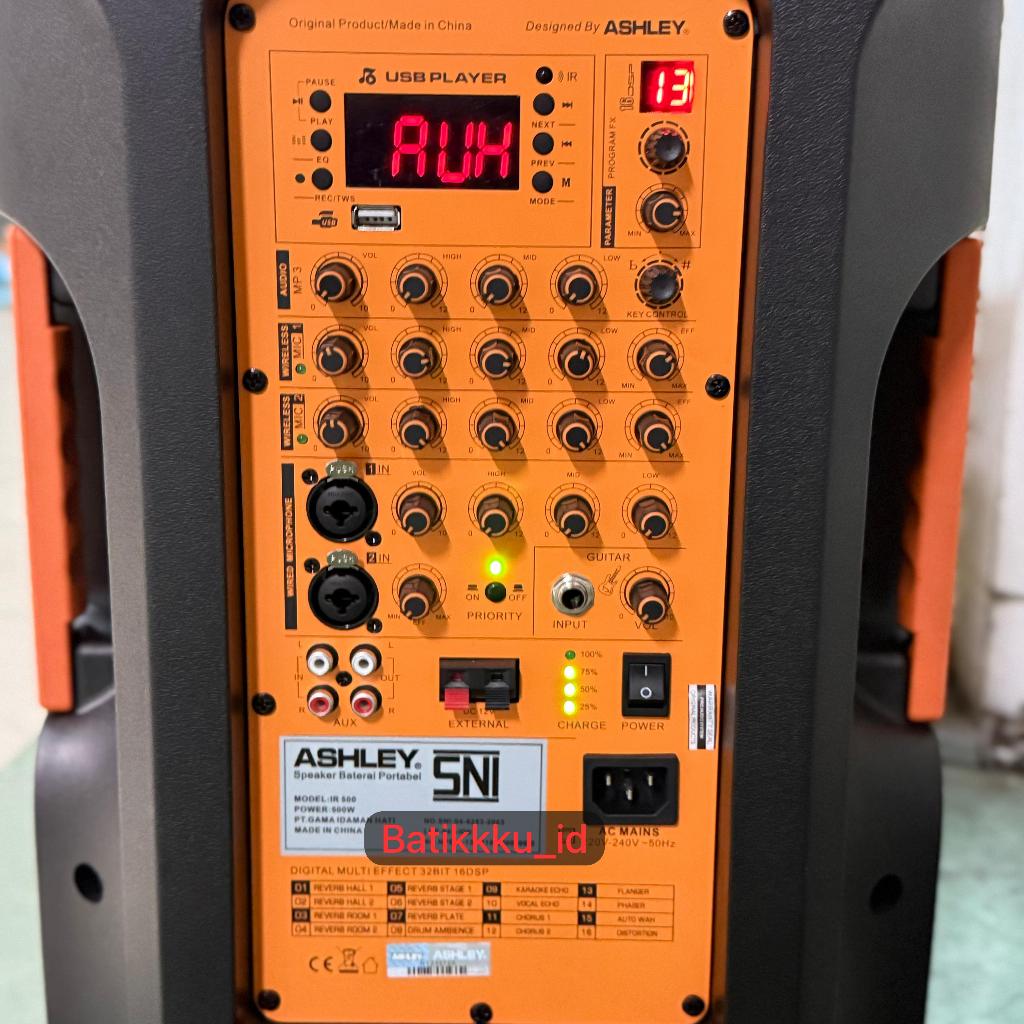 SPEAKER AKTIF PORTABLE ASHLEY IR 500 IR500 ORIGINAL NEW 12 INCH + 2 MIC WIRELESS ASHLEY