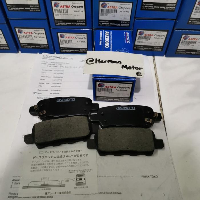 Brake Pad AKEBONO Kampas rem belakang AN-654WK Kendaraan Xtrail T30 2003-2009 OLD Original astra