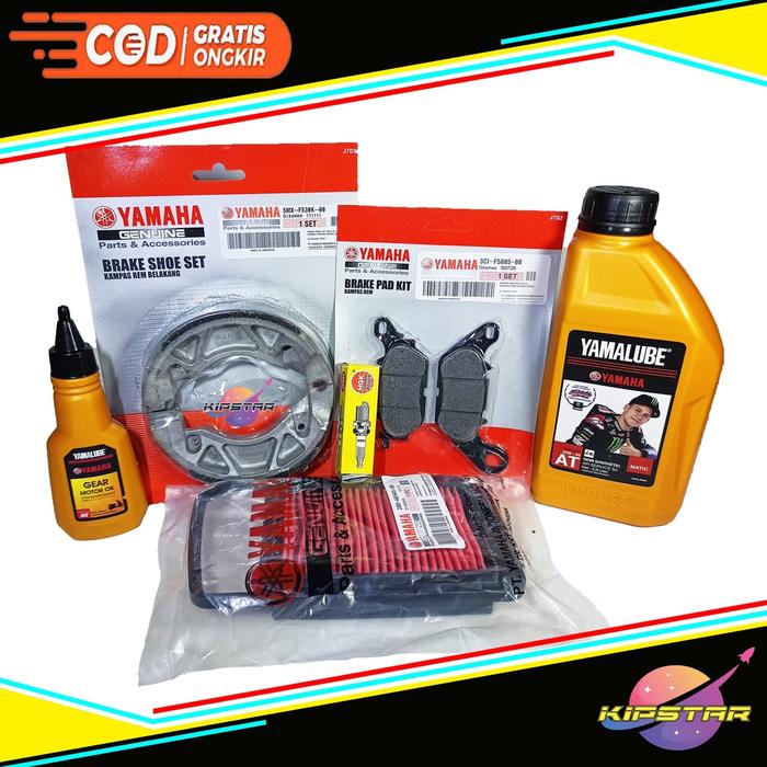 PAKET SERVICE MIO SMILE MIO SPORTY / PAKET KAMPAS REM DEPAN BELAKANG FILTER UDARA BUSI OLI YAMALUBE