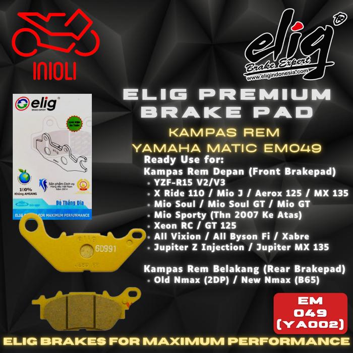 KAMPAS REM BELAKANG ELIG EM049 YAMAHA NMAX (R) YAMAHA YZF-R15 V2/V3 XRIDE 110 MIO J MIO GT MIO SOUL