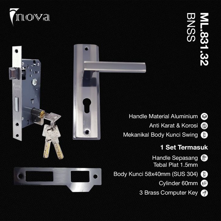 Promo Gagang Kunci Pintu Inova Kunci Pintu Set Lengkap mili.831.32 Handle Medium Tanggung 20cm Kunci Slot Gagang Pintu